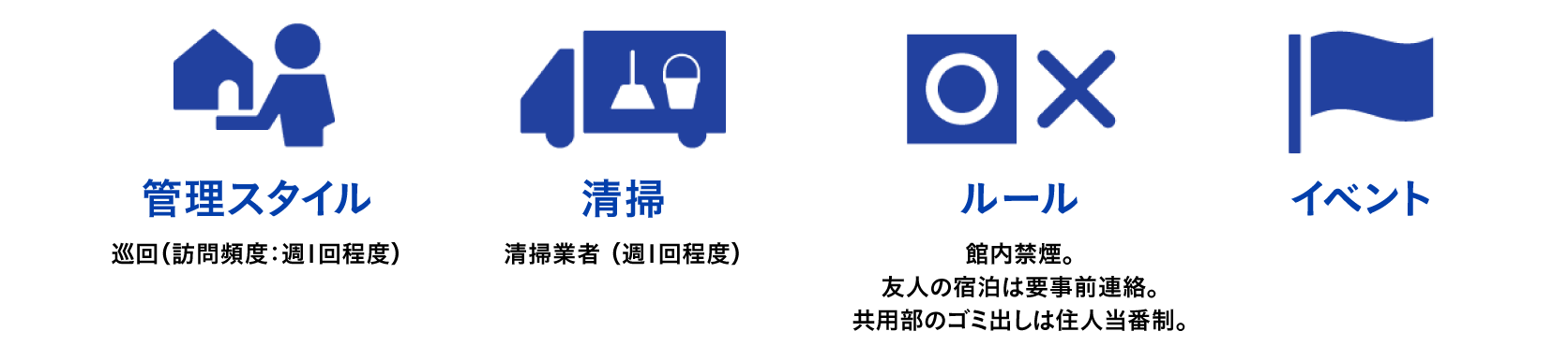 「人と人との出会いを大切にしたい」という思いから2018年11月にシェアハウスをオープンいたしました。定期イベントなどで交流を深めて頂きたいと思っております。ご入居後すぐに快適に生活できるようにオーナー自主管理のメリットを活かしてお手伝いさせていただきますのでよろしくお願いします。